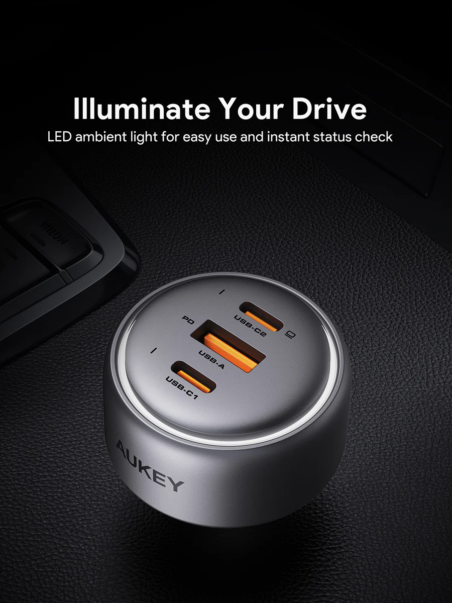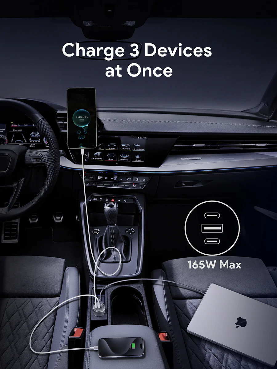 AUKEY Multi Port Car Charger 165W Pathfinder Mix 3 series model CC-P4 USB-A and USB-C