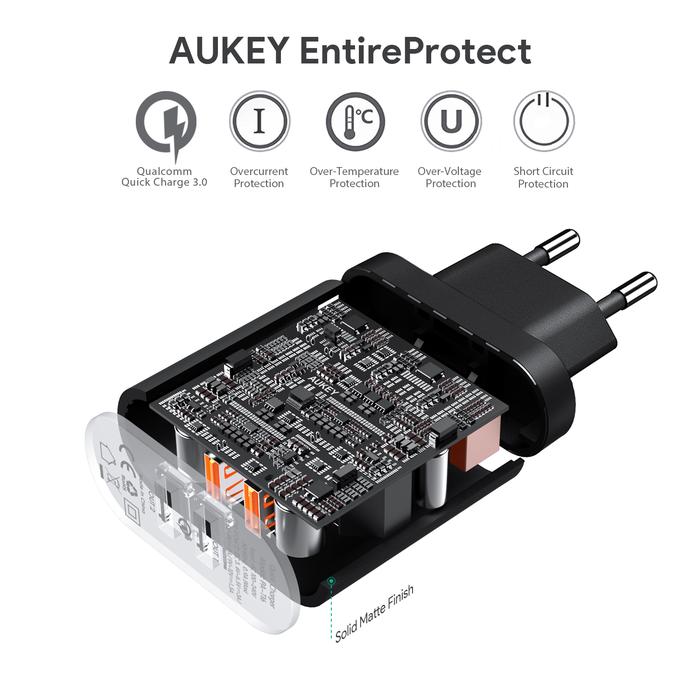 Aukey Charger Dual Port USB A Quick Charge 3.0 39W Black PA-T16-BK