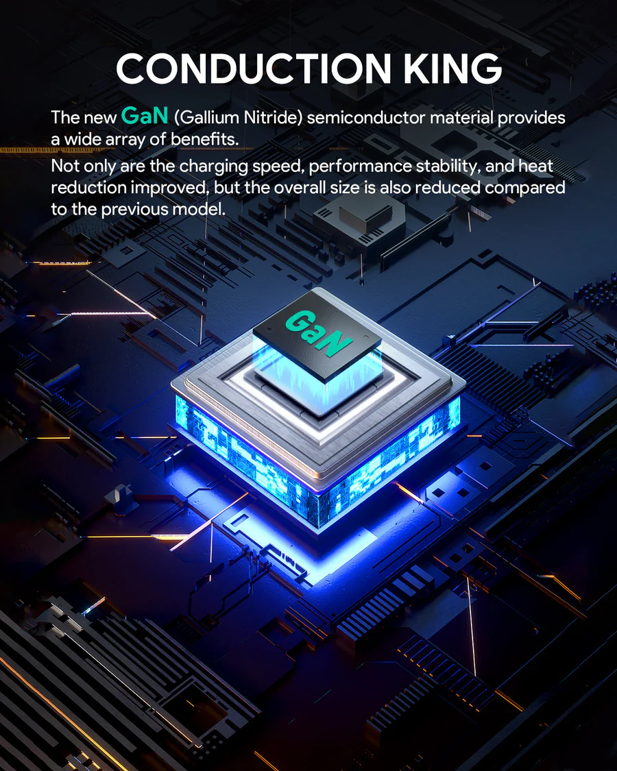 DIlengkapi dengan teknologi terkini GAN CHIP Teknologi yang membuat ukuran charger lebih kecil 40% dibanding charger bawaan sehingga mudah disimpan dan dibawa kemana mana