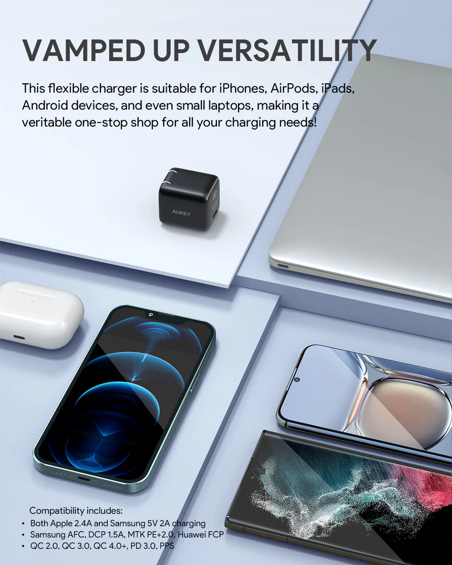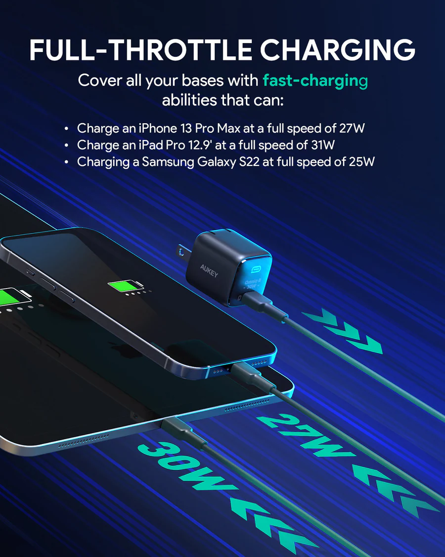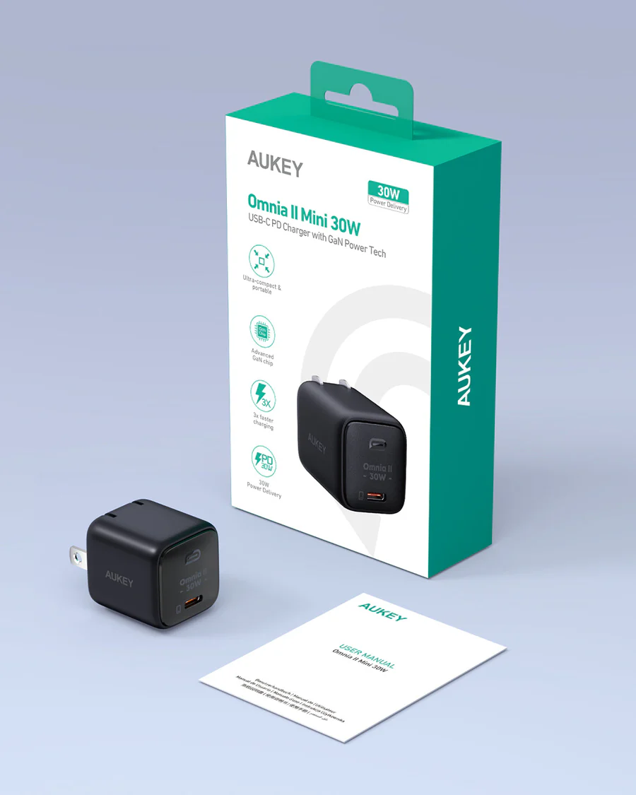 Kepala Charger Aukey 30 Watt GAN Power Delivery 3.0 PPS