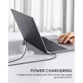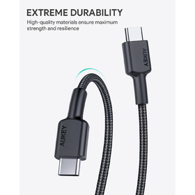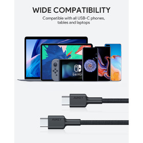 AUKEY Kabel Charger Type C CB-CD37 4 PCS Braided Nylon USB- C to USB-C Black Cable 3 Ampere Up To 60W Fast Charging