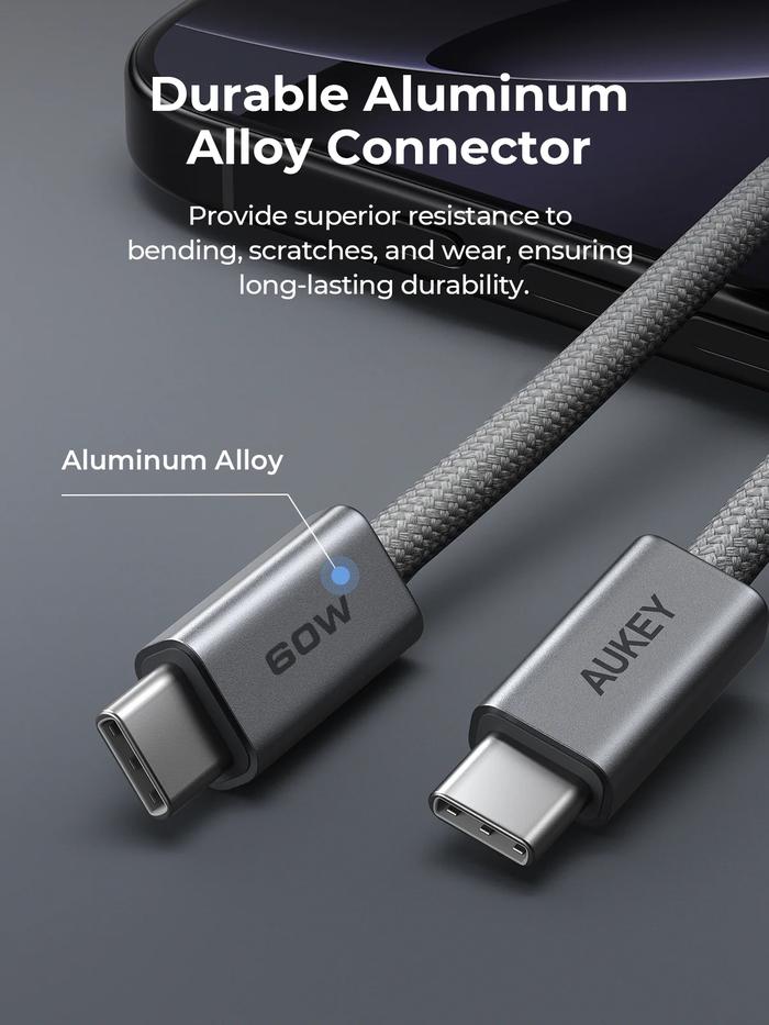 AUKEY Kabel Charger DTY Braided Material USB C To C Fast Charging Up To 60W CB-DCC061 Grey 1 Meter & 1.8 Meter
