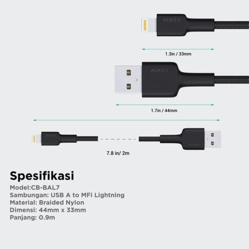 - Didalam Box : 1x Kabel charging AUKEY CB-BAL7 Black / White, 1x Wrap