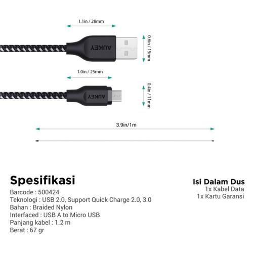 - Didalam Kotak : 1x Kabel charging AUKEY CB-BAM1, 1x Wrap