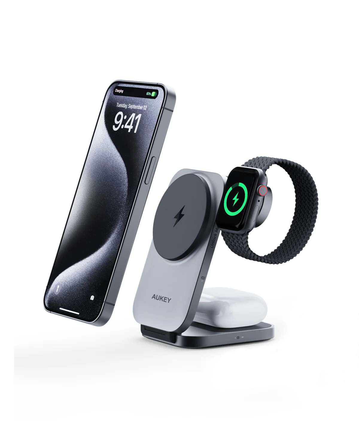 AUKEY Magnetic Wireless Charger 15W 3 In 1 MFI With Port Type C LC-MC312