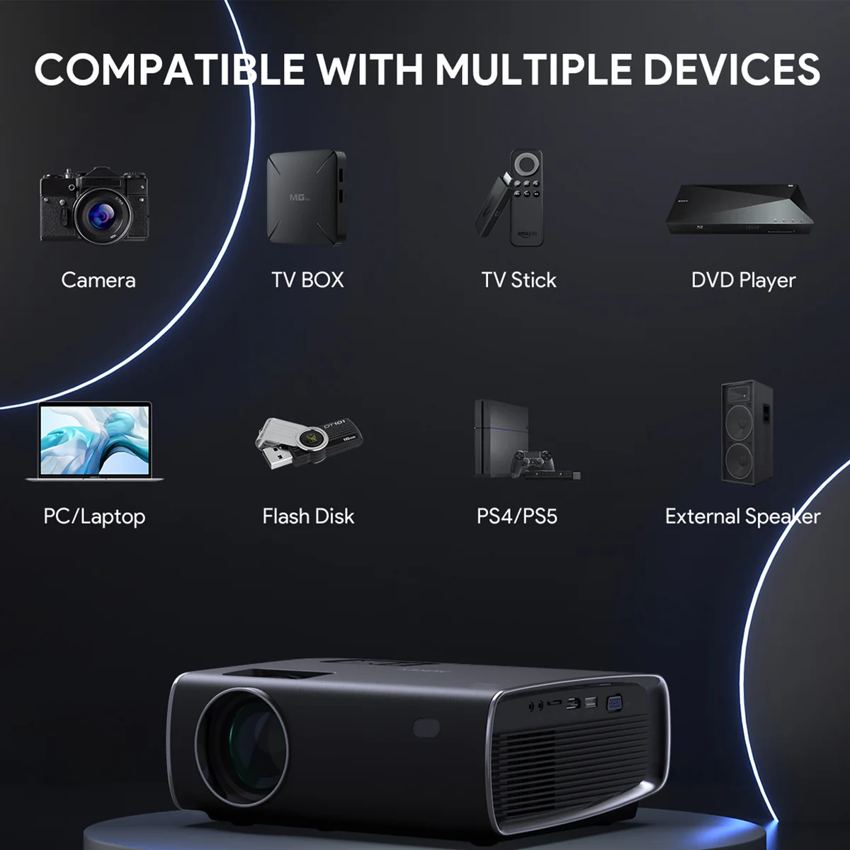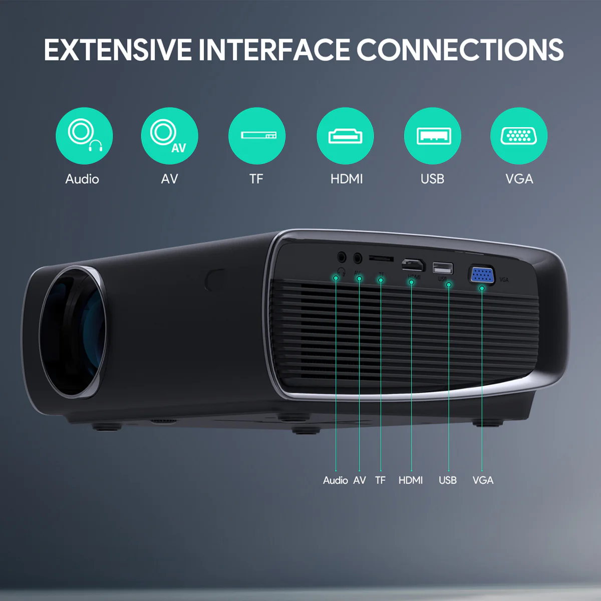 Anda bisa menyambungkan smartphone Anda ke proyektor ini tanpa kabel, menggunakan aplikasi bawaan mira dan ios cast, cukup sambungkan dengan wifi yang sama. Selain itu tetap dengan koneksi via HDMI/VGA/USB/Micro SD hingga AV.