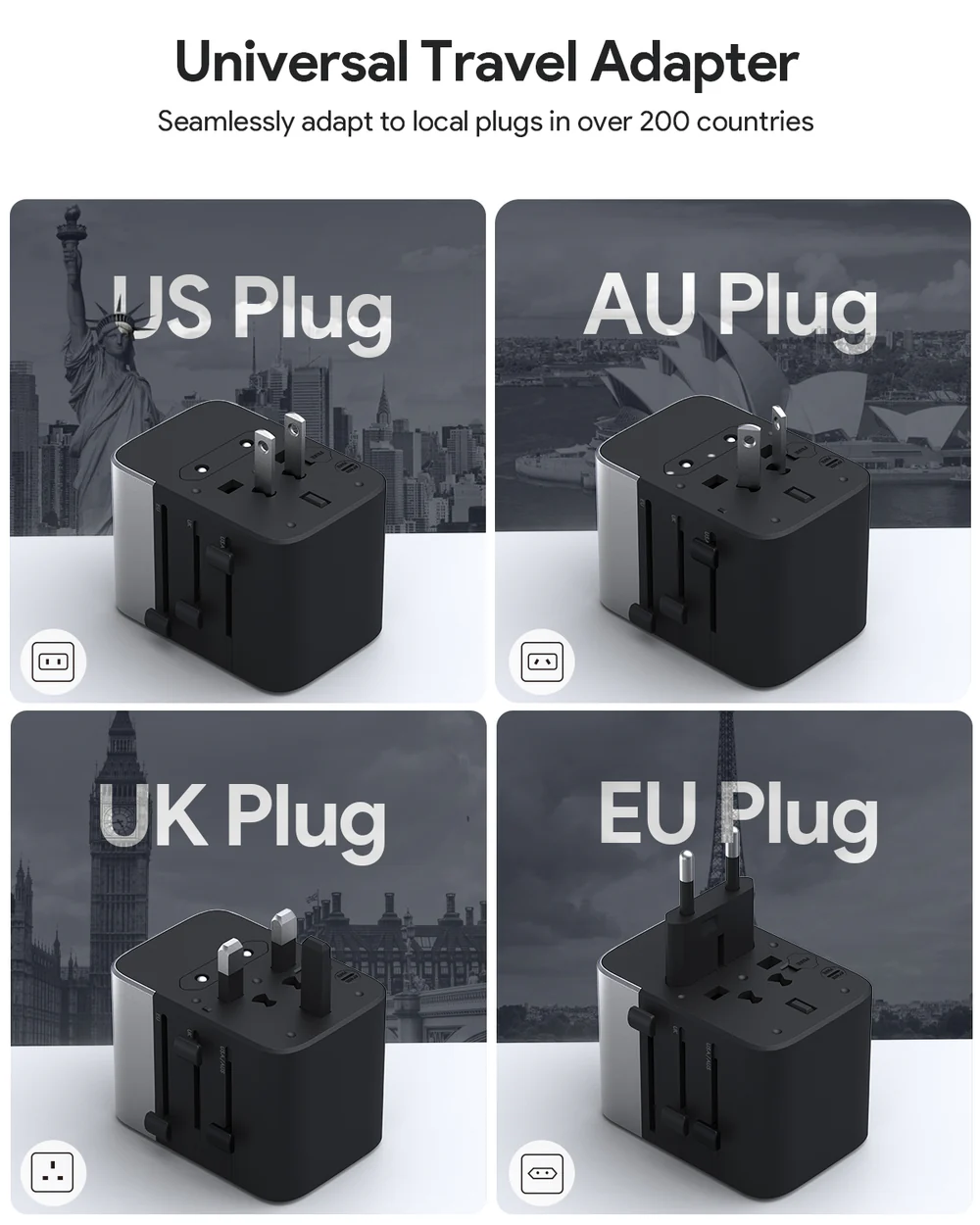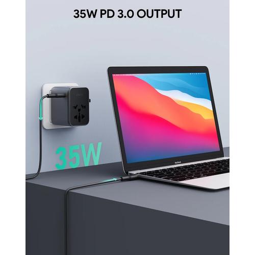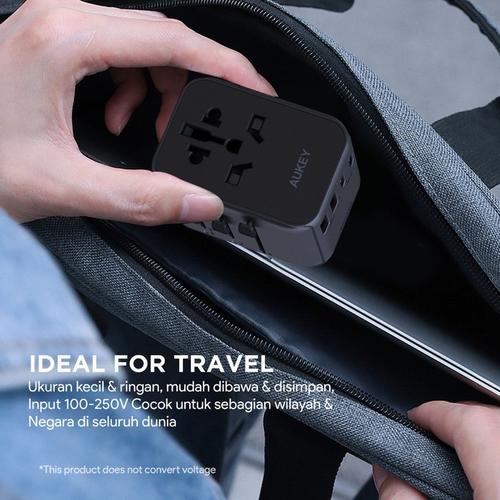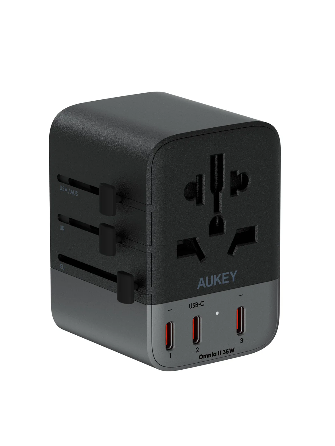 AUKEY PA-TA07A Grey Travel Mate 35W Charger USB PD Universal Travel Adapter with 6 port (2 USB-A + 3 USB-C + 1 power socket) charger