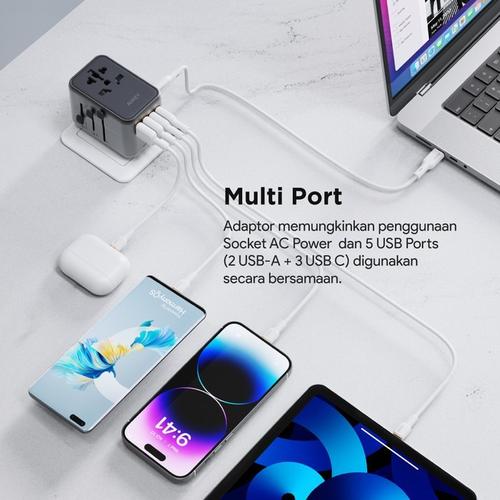 - Dapat digunakan untuk 6 device bersamaan : 2 USB-A & 3 USB-C & 1 power socket (cocok untuk EU Plug, US Plug, atau UK Plug)