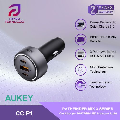 AUKEY Multi Port Car Charger 66W (36W+30W) Pathfinder Mix 3 series model CC-P1 USB-A and USB-C PD 3.0