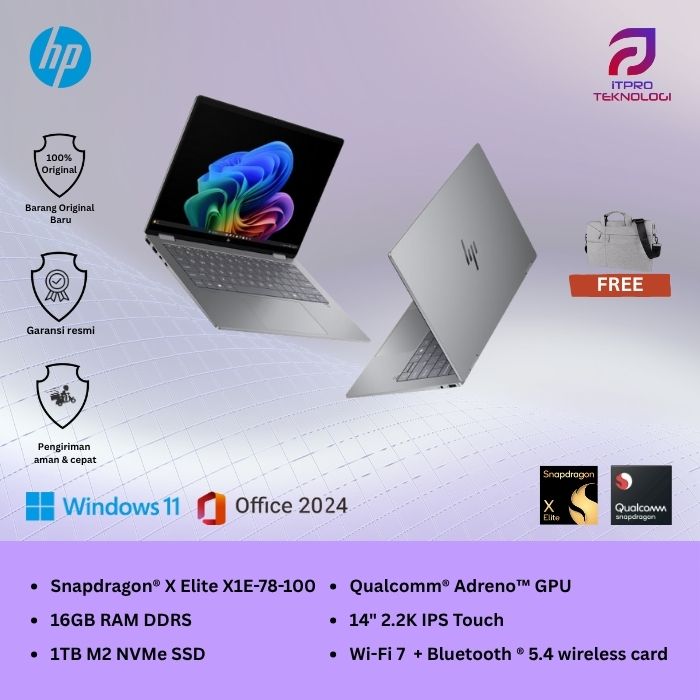 HP OmniBook X – Snapdragon X1 Elite,16GB, 1TB SSD, 14″ 2.2K Touch, Win 11 Home + OHS