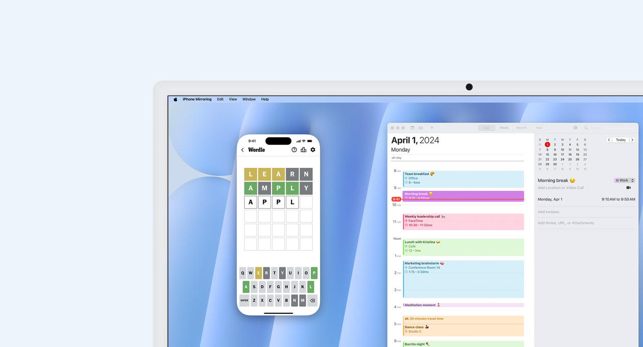 - Kamera 12MP Center Stage dengan dukungan untuk Desk View