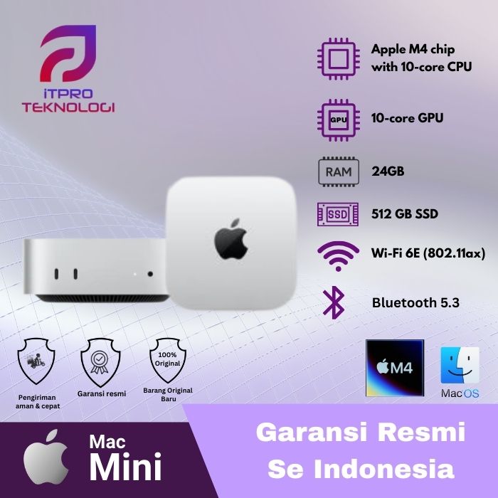 - Isi Kotak : Mac Mini M4, Kabel Daya