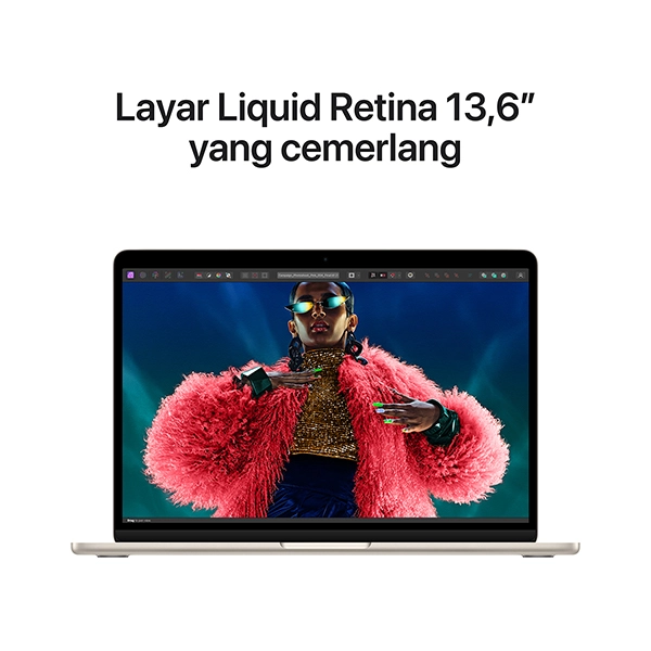 - Layar 13,6 inci (diagonal) dengan lampu latar LED dan teknologi IPS, resolusi bawaan 2560 x 1664 pada 224 piksel per inci, Kecerahan 500 nit, Dukungan untuk 1 miliar warna