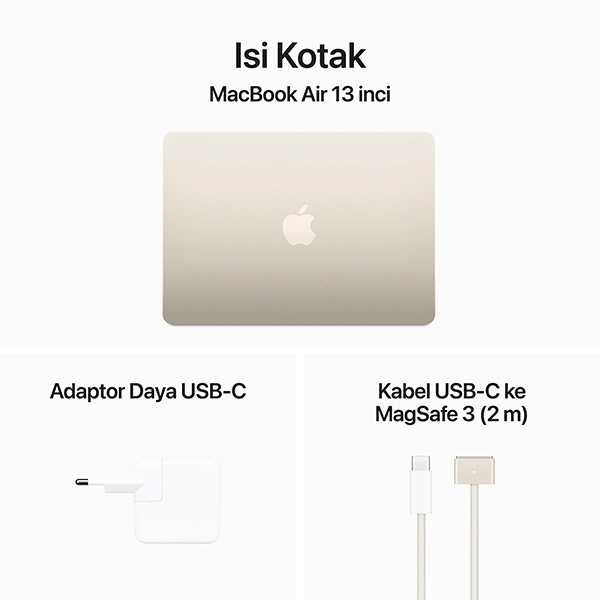 MacBook Air M3 (MC8N4ID/A) Starlight, 13 Inch, 8 core CPU, 10 core GPU, 24GB, 512GB SSD, 13.6″ IPS, MacOS