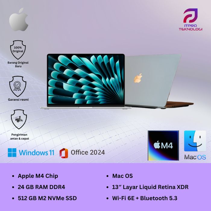 MacBook Air (MC6J4ID/A) Silver, 15-inch, Apple M4 chip, 10-core CPU, 10-core GPU, 24GB, 512GB SSD, macOS