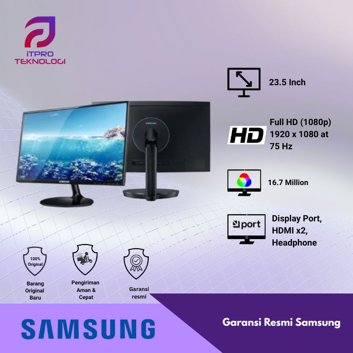 Screen Size (Inch)23.5,Screen Size (cm)59.8,Screen Size (Class)24,Flat / CurvedCurved,Active Display Size (HxV) (mm)521.3952(H) x 293.2848(V),Screen Curvature1800R,Aspect Ratio16:9,Panel TypeVA,Brightness (Typical)350cd/m2,Brightness (Min)250cd/m2,Peak Luminance Ratio75 %,Contrast Ratio Static3,000:1 (Typ.),Resolution1920 x 1080,Response Time1 (MPRT),Viewing Angle (H/V)178°(H)/178°(V),Color Support16.7M,Refresh Rate144Hz.