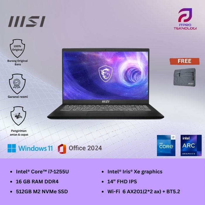 MSI Modern 14 C12MO (9S7-14J112-1285 | 9S7-14J111-141), Core i7 – 1255U, 16GB, 512GB SSD, Iris Xe graph, 14″ FHD, Win 11 Home + OHS