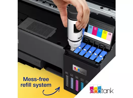 Sistem tangki tinta yang sederhana dan bebas repot memungkinkan Anda mengisi ulang dari botol.