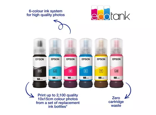 Selain itu, sistem botol EcoTank dengan kunci pengaman memastikan penggunaannya bebas dari tumpahan.